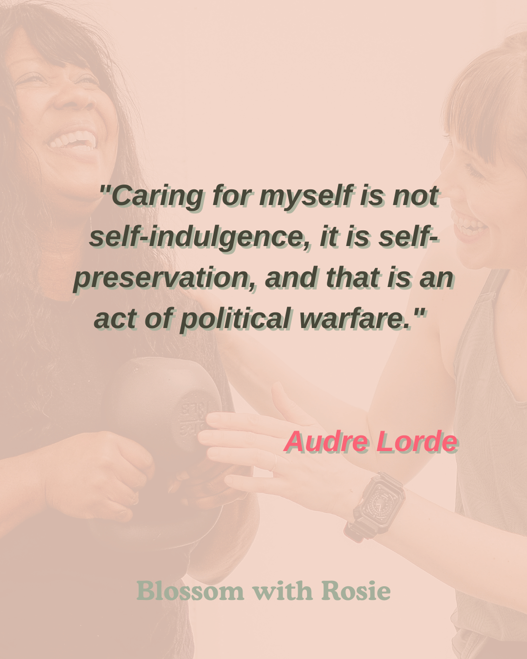 As poet and activist Audre Lorde famously wrote: "Caring for myself is not self-indulgence, it is self-preservation, and that is an act of political warfare." Looking after your body wasn't indulgent; it was necessary, powerful, and political.